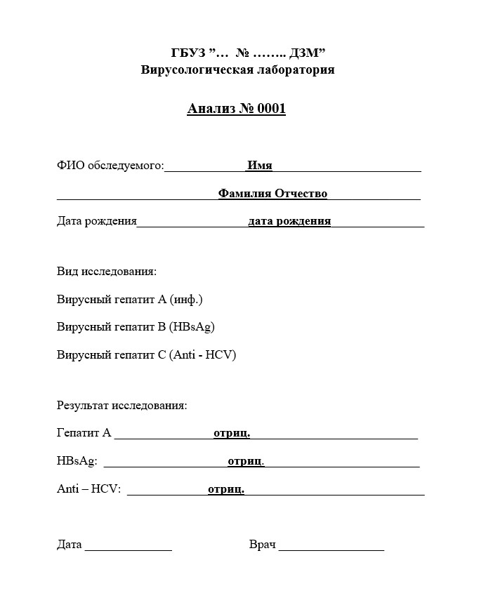 - Официальные документы: Все справки и анализы оформляются на подлинных бланках с печатями медицинских учреждений. Никаких ксерокопий или подделок.